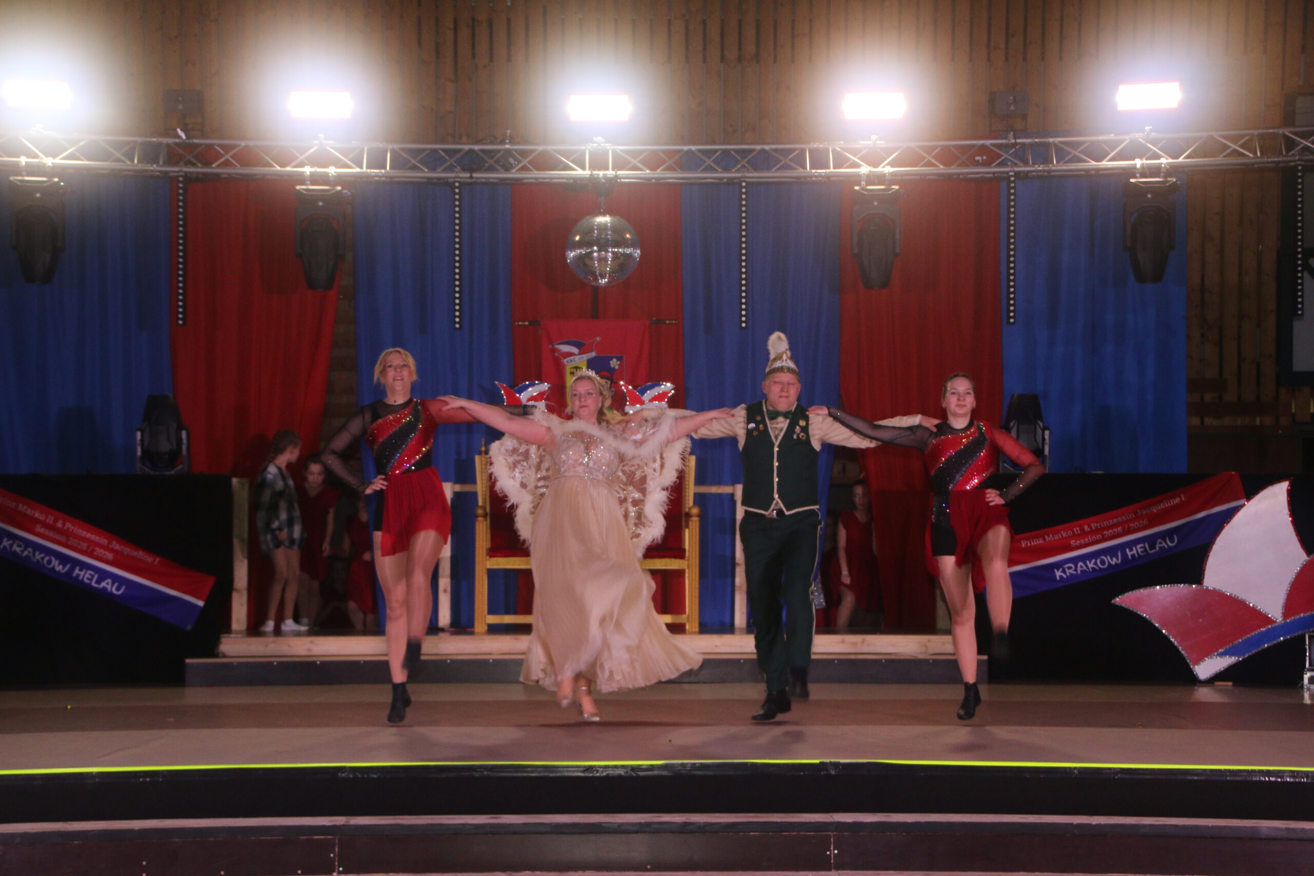 Was 2020 aus einem Gedankenblitz entstand, hat es im November 2025 endlich auf die Bühne geschafft. Dazwischen ist das Leben passiert. Erst kam Corona mit allen Einschränkungen und den ausgefallenen Veranstaltungen dazwischen, dann persönliche Umzüge, Trainerwechsel im Verein und dann eine Schwangerschaft mit einem Jahr Babypause vom Vereinsleben. Im November 2024 kam es bei der Generalprobe für die Auftaktveranstaltung zu einem Aufleben des kleinen Blitzes und es wurde ein ganzes Ideengewitter daraus. Am Ende des Abends stand fest: Wir werden in der nächsten Session wieder auf dieser Bühne stehen! Ein gemeinsames Comeback in Tanzschuhen. Schnell ging es in die detaillierte Planung. Stundenlang haben wir Musik gehört und die passende irgendwann gefunden, tausende Kleider haben wir uns im Internet angesehen, Tanzschritte einstudiert und wieder verworfen, wir haben geweint, geflucht und eine Menge gelacht. Jedes Training machte uns in unserer Idee sicherer, jedes Anziehen der Tanzschuhe hat uns mehr mit unserer Passion – dem Tanzen – verbunden. Im November 2025 durften wir endlich unser Ergebnis präsentieren und wir haben esgenossen. Nicht nur den Applaus und die netten Komplimente. Vielmehr das Gefühl, unsere Leidenschaft, mit den Vereinsmitgliedern und dem Publikum teilen zu können. Wir freuen uns auf viele weitere Tänze!