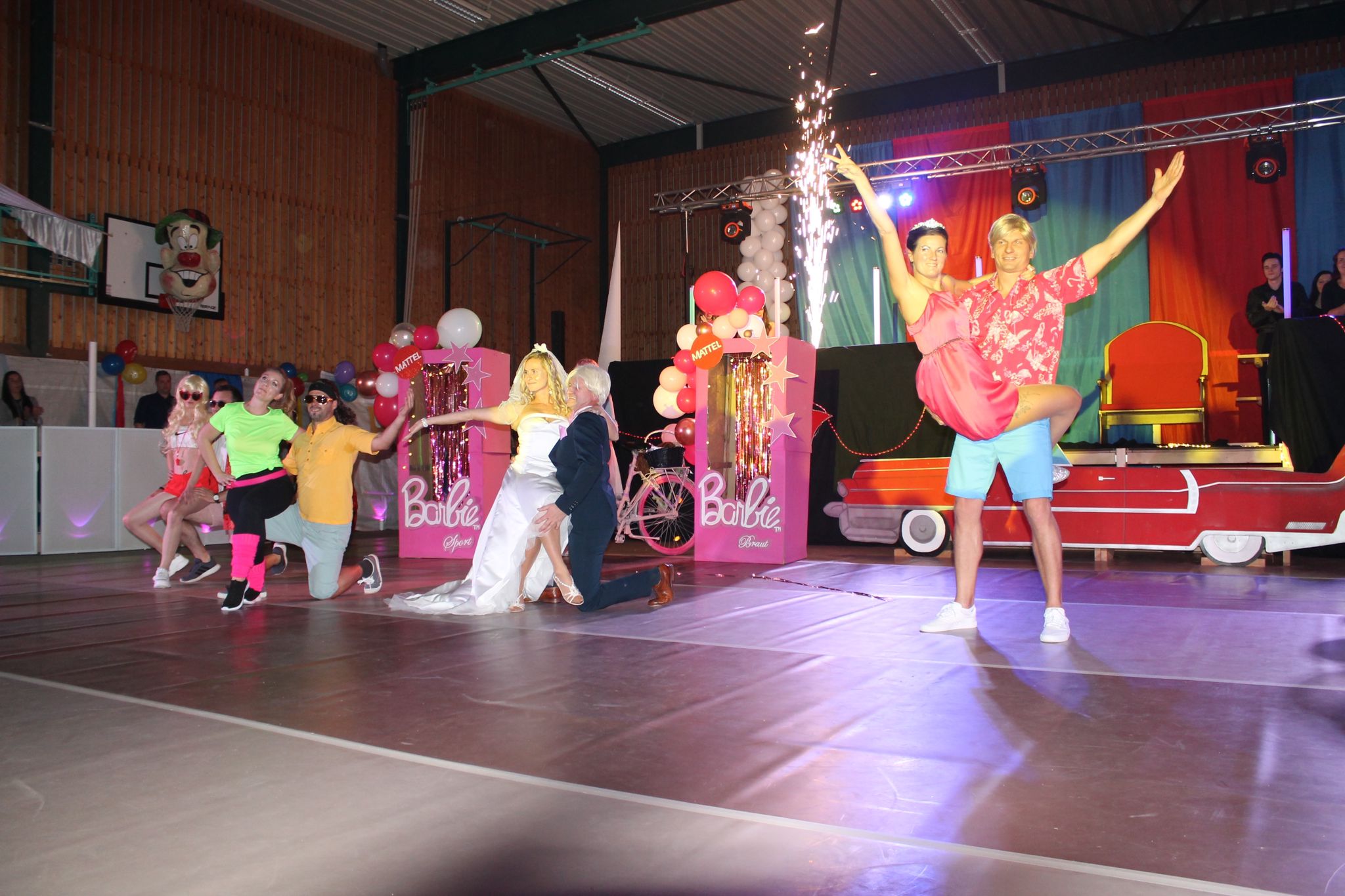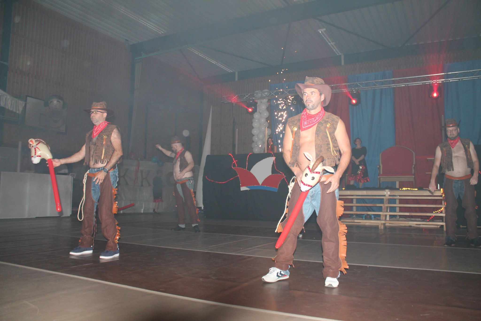 Ihren ersten Auftritt als Büttenmaus hatte an diesem Abend unsere Lina von den Minnie´s. Sie meisterte Ihren Auftritt mit Bravour, wickelte das Publikum sofort um Ihren Finger und sorgte für viele Lacher im Saal. Natürlich durfte auch unsere Gesangsgruppe um Wolfgang nicht fehlen – sie gaben im Laufe des Abends zwei Titel zum Besten und animierten unser Publikum erfolgreich zum mitsingen. Unser Roger bot ebenso zwei schillernd-atemberaubende Tanzeinlagen mit Unterstützung seiner „Dancing Diamonds“. Hierfür erntete er tosenden Applaus! Unsere Minnies ließen Kindheitserinnerungen mit ihrem Showtanz aufleben. Hier tanzten Heidi und Peter lockerflockig über die Tanzfläche und machten ordentlich „Party auf der Alm“. Seit über 60 Jahren lässt „Barbie“ die Herzen Vieler höherschlagen – heute zeigten die Cocktails einen bunten Mix aus Barbie´s & Ken´s Leben. Von der Spritztour mit dem Auto über Party mit Ken, einer Hochzeit, in der Freizeit, beim Sport und am Strand war alles dabei. Auch die Prinzengarde überzeugte mit Ihren Showtanz der genau unter diesem Motto stand. Mit viel Licht, Glitzer, Zylindern und Stöcken boten Sie eine tolle Darbietung und der Motto „The Greatest Showman“! Hinter feinem Nebel tauchten beim nächsten Act leuchtende Kugeln auf. Diese gehörten zum Showtanz der Teenie´s. Zum Abschluss des Programms durfte natürlich unser Männerballett nicht fehlen. Im Western-Style ließen sie die Hüften kreisen und rissen das Publikum mit.