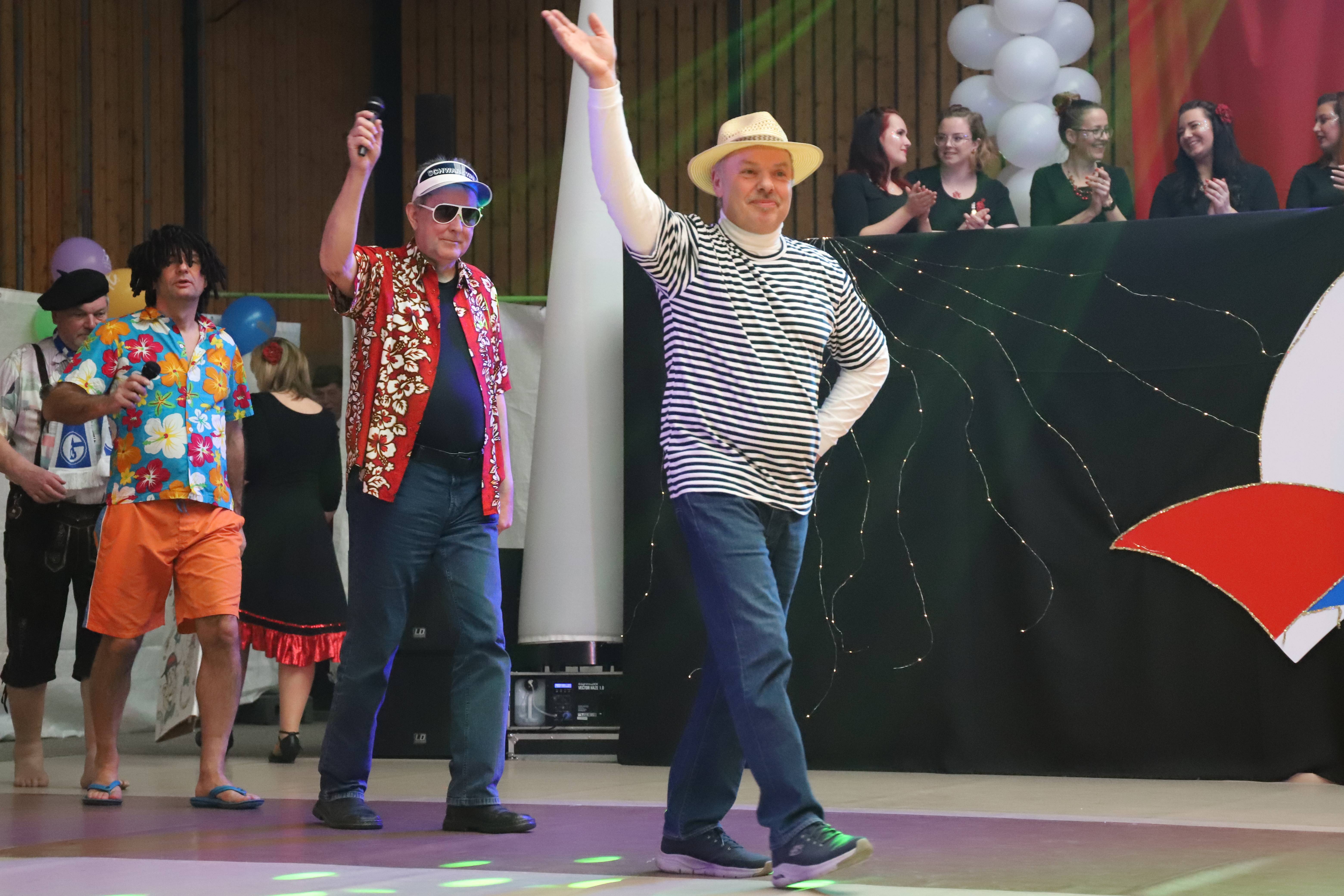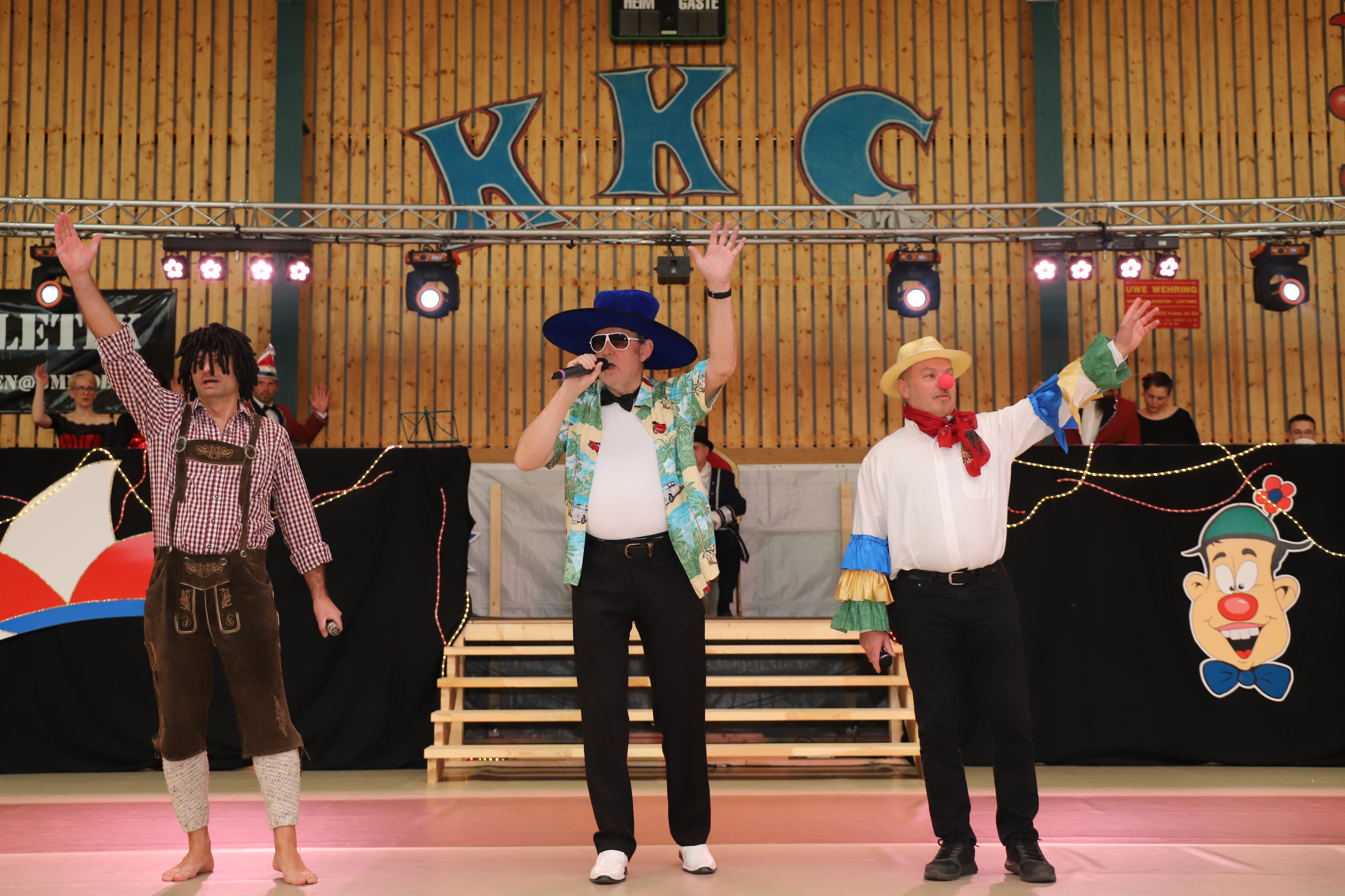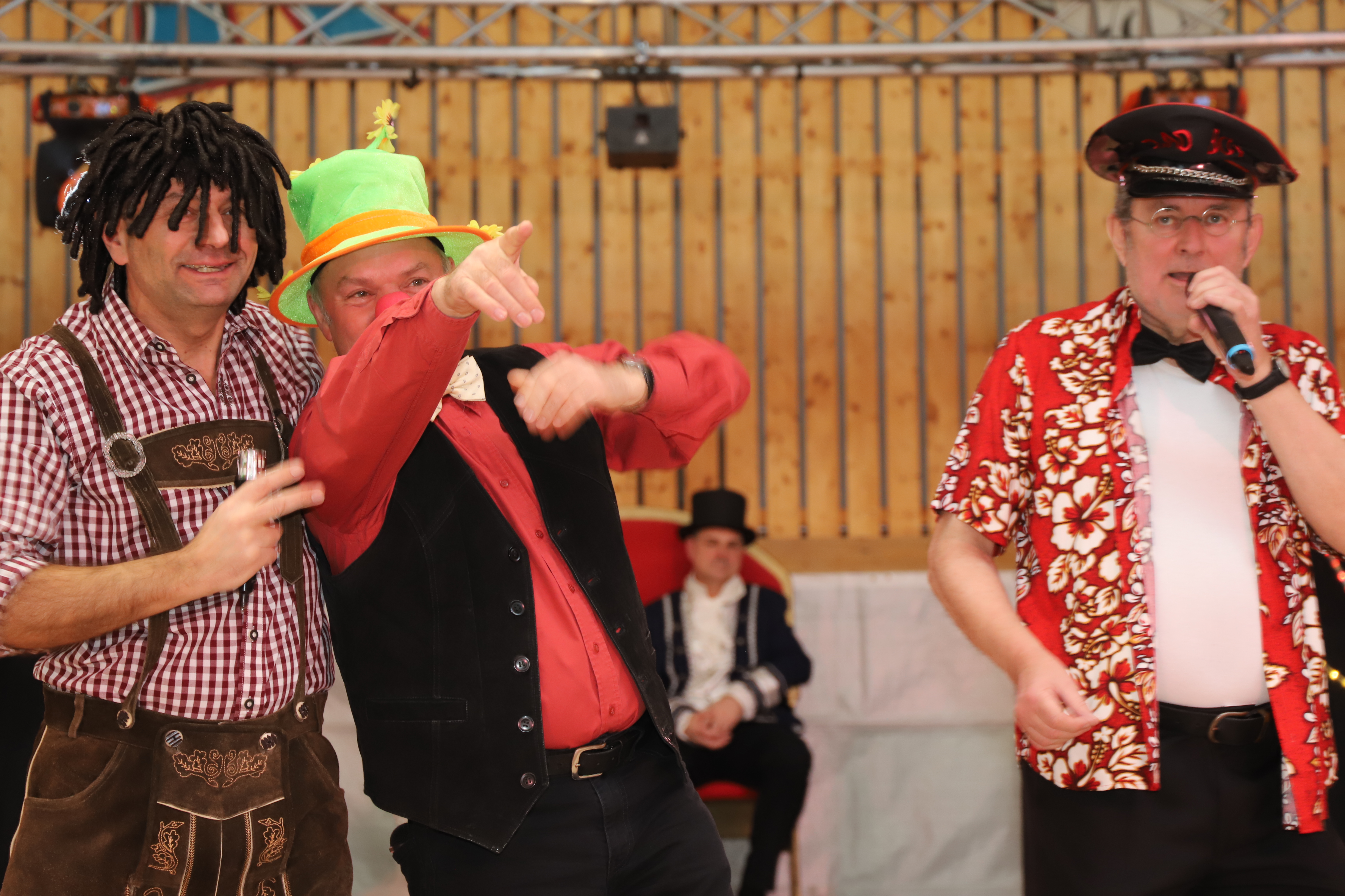 Für musikalische Beiträge nach feinster Karnevalsart mit lustigen, selbst komponierten Texten sorgen auf unseren verschiedenen Veranstaltungen die „Nachtigallen“. Sie zeichnen sich durch extra eingesungene, stimmungsvolle Gesangsstücken aus, die gekrönt mit ihrer witzigen Kostümierung, jeden ihrer Beiträge zu einem Highlight im Programm machen. Doch wie kam es dazu? Günter, bereits langjähriges Mitglied im Verein, überredete seinen Kumpel Wolfgang sich den Karneval mal aus einer anderen Perspektive, nämlich hinter den Kulissen anzusehen, denn er wusste: in Wolfgang steckt ein besonderes Talent das Programm mit lustigen musikalischen Einlagen aufzulockern. Wolfgang, offen wie wir ihn kannten, ließ sich nicht lang bitten: Hinzu kamen weitere Mitglieder und mit Eckhard, Volker und Paul sind die Nachtigallen mittlerweile ein generationsübergreifender bunter Haufen – einfach pure Stimmungskanonen. Mit ihrem musikalischen Talent, den gemeinsamen Ideen, lustigen und manchmal frivolen Texten, stimmungsvollen Gesangstücken und witziger Kostümierung sorgt die Gesangsgruppe seitdem für Spaß und gute Laune.
